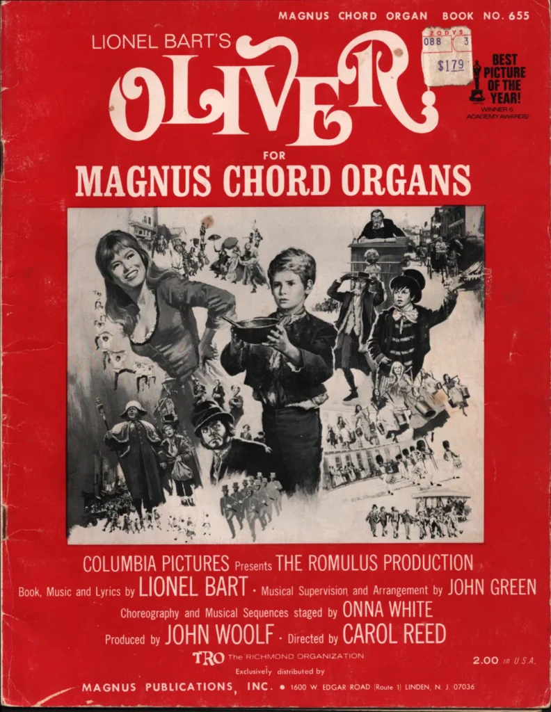 Music Book, Lionel Bart, John Green, Magnus Chord Organ Book No. 655, Vocal Selections, Souvenir Folio, Academy Award Winner Best Picture of the Year